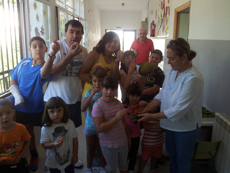 Aquí estamos en Rebollar disfrutando las exquisiteces que recolectamos en nuestro huerto escolar. Alicia, que hizo la foto, pudo degustar nada más llegar al cole de nuestras habilidades como hortelanos. Estamos preparando los huertos para hacer unos semilleros para las cosechas de Otoño/Invierno. Pedro "El hortelano".